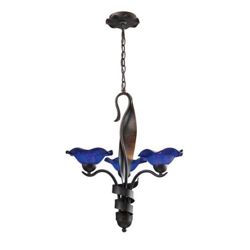 Glass:Cobalt, Light Bulb:(3)40w T4 G9 120v Halogen Beautiful hand-formed glass offers a palette of vivid colors, complimented by a substantial wrought iron frame finished in weathered rust..../ Elk 10182/3COB Villa 3-Light Chandelier Cobalt Glass In Weathered Rust / Elk Lamps